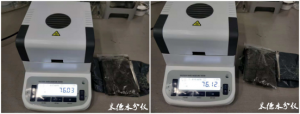 • 測試污泥是脫水后的樣品,有部分結塊現象,測試時需要將大塊的樣品用實驗勺搗成小塊,避免大塊樣品無法徹底烘干或延長測試時間;